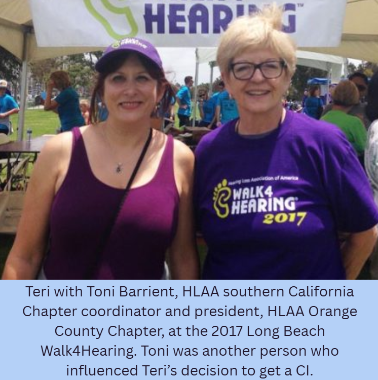 I began the CI medical qualification process in 2017, but didn’t proceed at that time. I was still “getting by” and scared to lose my remaining residual hearing and enjoyment of music, among other fears. I didn’t know if I could maintain my business during the long downtime needed for recovery and aural rehabilitation. Meanwhile, I continued to be active in HLAA, attending some of the annual conventions and volunteering for the Long Beach Walk4Hearing.